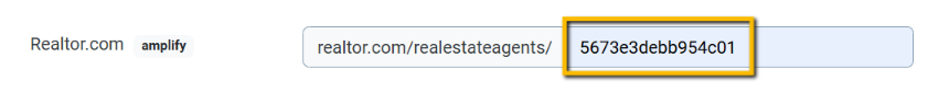 For example, if your realtor.com URL is https://www.realtor.com/realestateagents/5673e3debb954c010067f9da, please only put 5673e3debb954c010067f9da in the blank field in your RMA account because the https://www.realtor.com/realestateagents/ part has already been pre-filled for you.